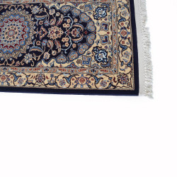 Alfombra clásica hecha a máquina en colores azul y vainilla con lana de alta calidad.