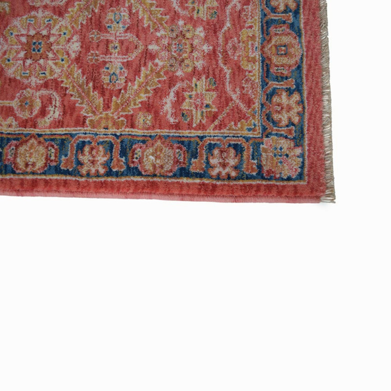 Preciosa alfombra hecha a máquina con lana 100% de Nuevazelanda con alegres colores en beige y salmón. Su diseño imita a las cásicas alfombras Ziegler manuales.