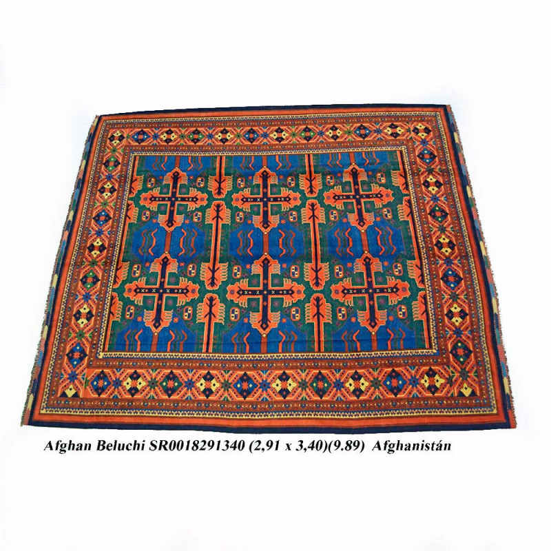 Alfombra elaborada a mano con lana de excelente calidad. Tiene unas dimensiones de 291X340 cm mas el fleco que sale de la misma trama de la alfombra.
