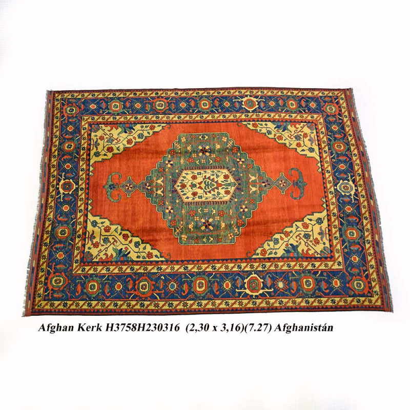 Alfombra elaborada a mano con lana de excelente calidad. Tiene unas dimensiones de 230 X 316cm mas el fleco que sale de la misma trama de la alfombra.