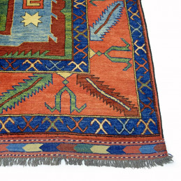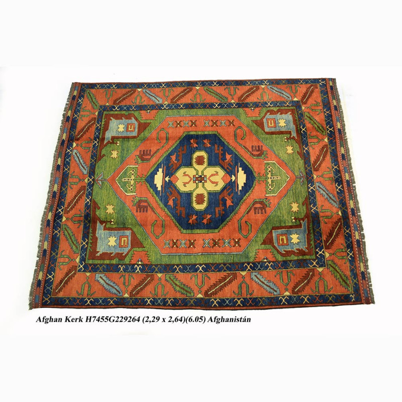 Alfombra elaborada a mano con lana de excelente calidad. Tiene unas dimensiones de 229 X 264cm mas el fleco que sale de la misma trama de la alfombra.