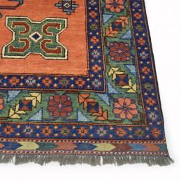 Alfombra elaborada a mano con lana de excelente calidad. Tiene unas dimensiones de 216 X 273cm mas el fleco que sale de la misma trama de la alfombra.