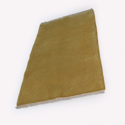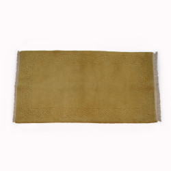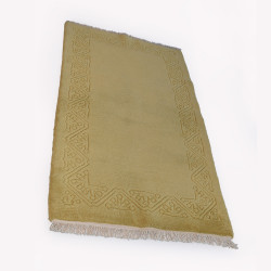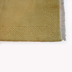 Elegante alfombra de lana hecha a mano en India con diseño liso y una greca labrada. Disponible en varios colores y medidas de pie de cama. Elegantes y sutiles, ideales para combinar con cualquier ropa de cama.