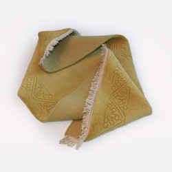 Al estar hecha a mano el tamaño puede variar unos centímetros, y a la largura hay que sumarle entre 10 y 14 centímetros de los flecos.