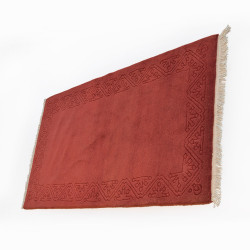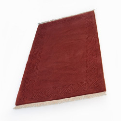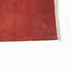 Alfombra de sala, hecha a máquina con lana, disponible en color teja o granate y con motivos típicos de las alfombras gabbeh.