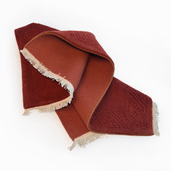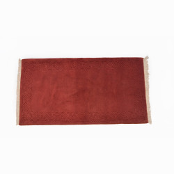 Elegante alfombra de lana hecha a mano en India con diseño liso y una greca labrada. Disponible en varios colores y medidas de pie de cama. Elegantes y sutiles, ideales para combinar con cualquier ropa de cama.