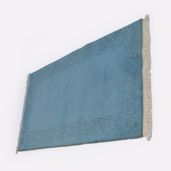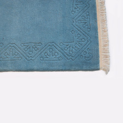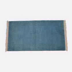 Elegante alfombra de lana hecha a mano en India con diseño liso y una greca labrada. Disponible en varios colores y medidas de pie de cama. Elegantes y sutiles, ideales para combinar con cualquier ropa de cama.