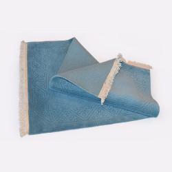 Alfombra de sala o habitación, hecha a máquina con lana de alta calidad. De estilo moderno y con alegres tonos azules.