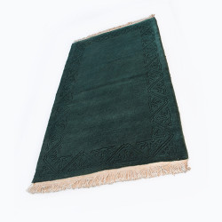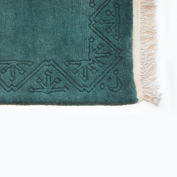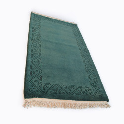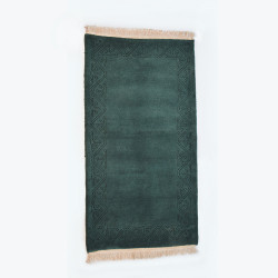 Elegante alfombra de lana hecha a mano en India con diseño liso y una greca labrada. Disponible en varios colores y medidas de pie de cama. Elegantes y sutiles, ideales para combinar con cualquier ropa de cama.