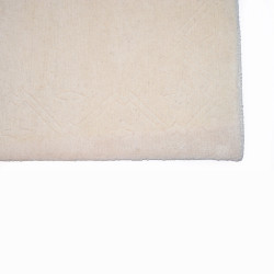 Elegante alfombra de lana hecha a mano en India con diseño liso y una greca labrada. Disponible en varios colores y medidas de pie de cama. Elegantes y sutiles, ideales para combinar con cualquier ropa de cama.