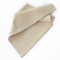 Al estar hecha a mano el tamaño puede variar unos centímetros, y a la largura hay que sumarle entre 10 y 14 centímetros de los flecos.