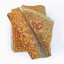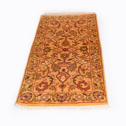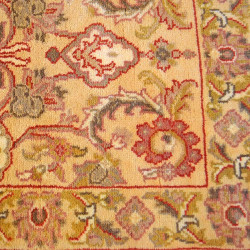 Se trata de una alfombra de lana hecha a mano en India, con gran cantidad de lana por metro cuadrado. Su dibujo es clásico y de flor amplia.