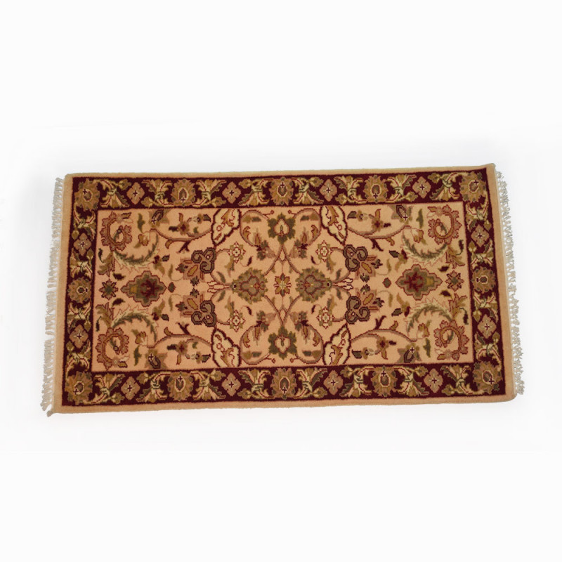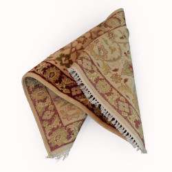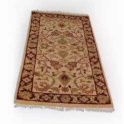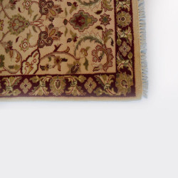 Se trata de una alfombra de lana hecha a mano en India, con gran cantidad de lana por metro cuadrado. Su dibujo es clásico y de flor amplia.