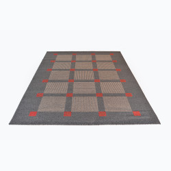 Se trata de una alfombra hecha a máquina en Bélgica con fibras acrílicas. De diseño moderno y desenfadado que le dan un aspecto juvenil.