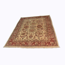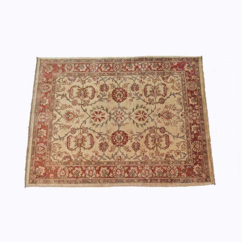 Se trata de una alfombra anudada a mano en Afganistán, con lanas tintadas artesanalmente y lavadas para darle ese aspecto rústico y envejecido tan característico de las alfombras Ziegler.