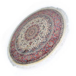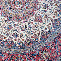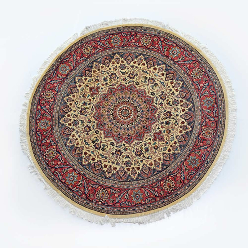 Alfombra redonda hecha a mano en Iran con lana y detalles en seda. Medida: 250X250