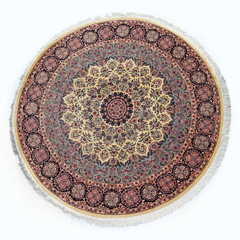 Alfombra redonda hecha a mano en Pakistán con lana. Medida: 155X155