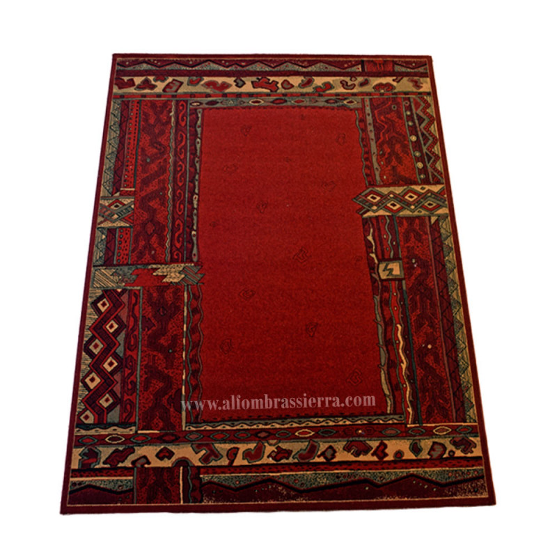 Elegante alfombra clásica, de composición acrílica. Disponible en dos colores, rojo y azúl grisáceo, y multitud de medidas.