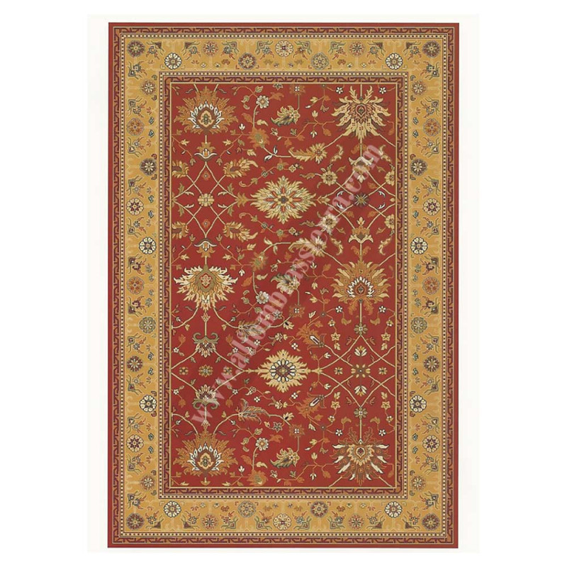 ALFOMBRA MANUAL CONFECCIONADA EN INDIA, DE DISEÑO CLÁSICO FLORAL Y COLORES ROJOS. FORMA RECTANGULAR