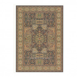 Elegante alfombra clásica, de composición acrílica. Disponible en dos colores, rojo y azúl grisáceo, y multitud de medidas.