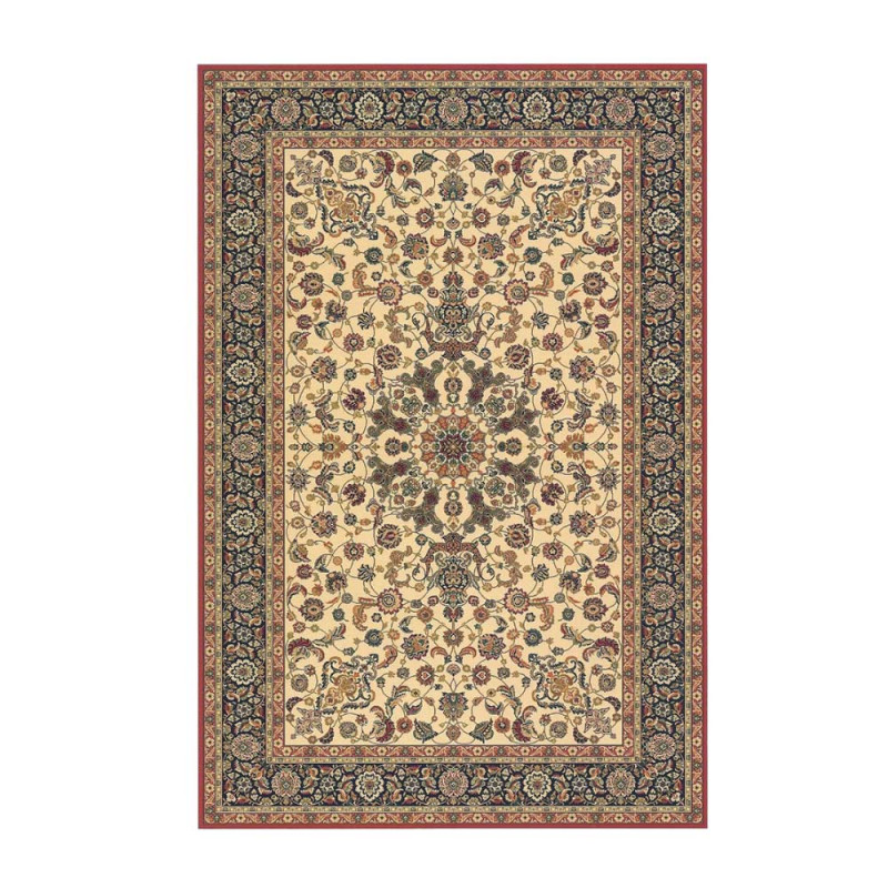 Elegante alfombra clásica, de composición acrílica. Disponible en dos colores, rojo y azúl grisáceo, y multitud de medidas.