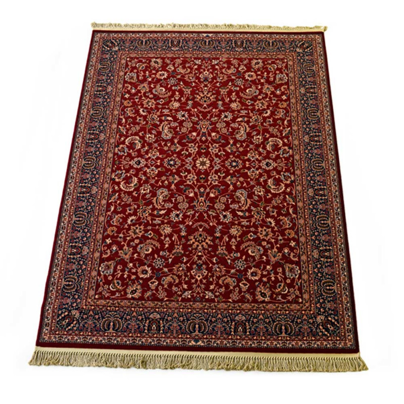 Elegante alfombra clásica, de composición acrílica. Disponible en dos colores, rojo y azúl grisáceo, y multitud de medidas.