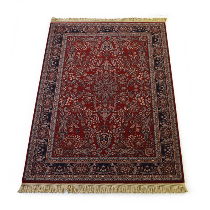 Alfombra de sala, hecha a máquina con lana de alta calidad, de tonos granates.