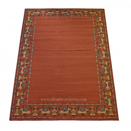ALFOMBRA MANUAL CONFECCIONADA EN INDIA, DE DISEÑO CLÁSICO FLORAL Y COLORES TEJAS. FORMA CUADRADA