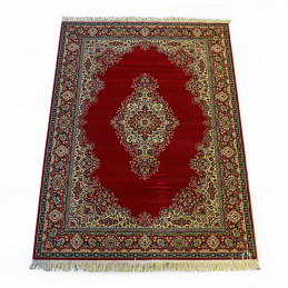 Elegante alfombra clásica, de composición acrílica. Disponible en dos colores, rojo y azúl grisáceo, y multitud de medidas.
