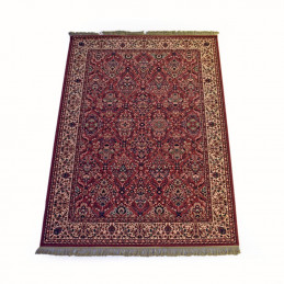 Elegante alfombra clásica, de composición acrílica. Disponible en dos colores, rojo y azúl grisáceo, y multitud de medidas.