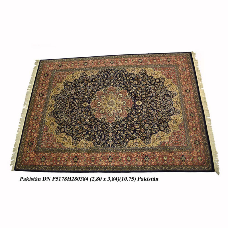 Alfombra hecha en Pakistán, a mano, una de las mejores calidades que se pueden encontrar en alfombras anudadas a mano. Elaborada con lanas finísimas y de colores brillantes. Con diseño clásico y elegante ideal para cualquier estancia de su casa, ya sea en un comedor, un salón o en un despacho.