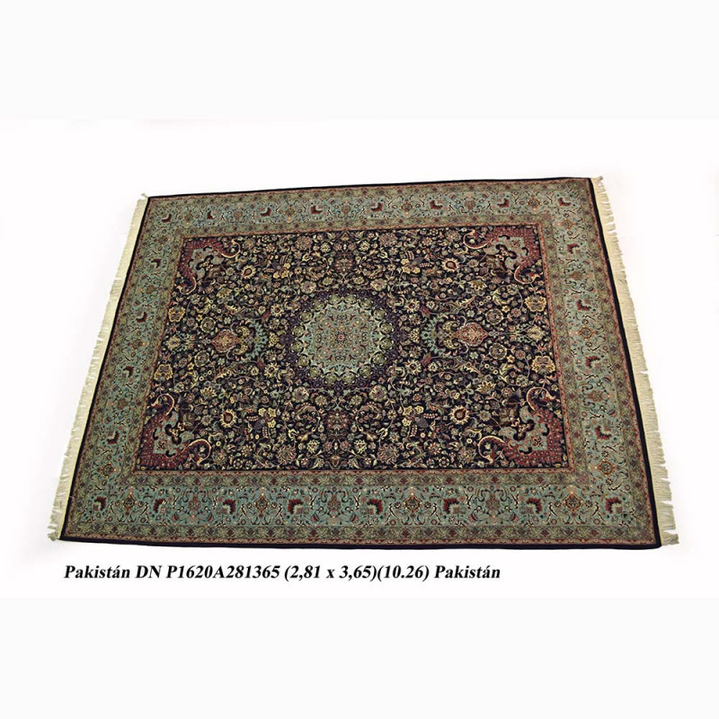 Alfombra hecha en Pakistán, a mano, una de las mejores calidades que se pueden encontrar en alfombras anudadas a mano. Elaborada con lanas finísimas y de colores brillantes. Con diseño clásico y elegante ideal para cualquier estancia de su casa, ya sea en un comedor, un salón o en un despacho.