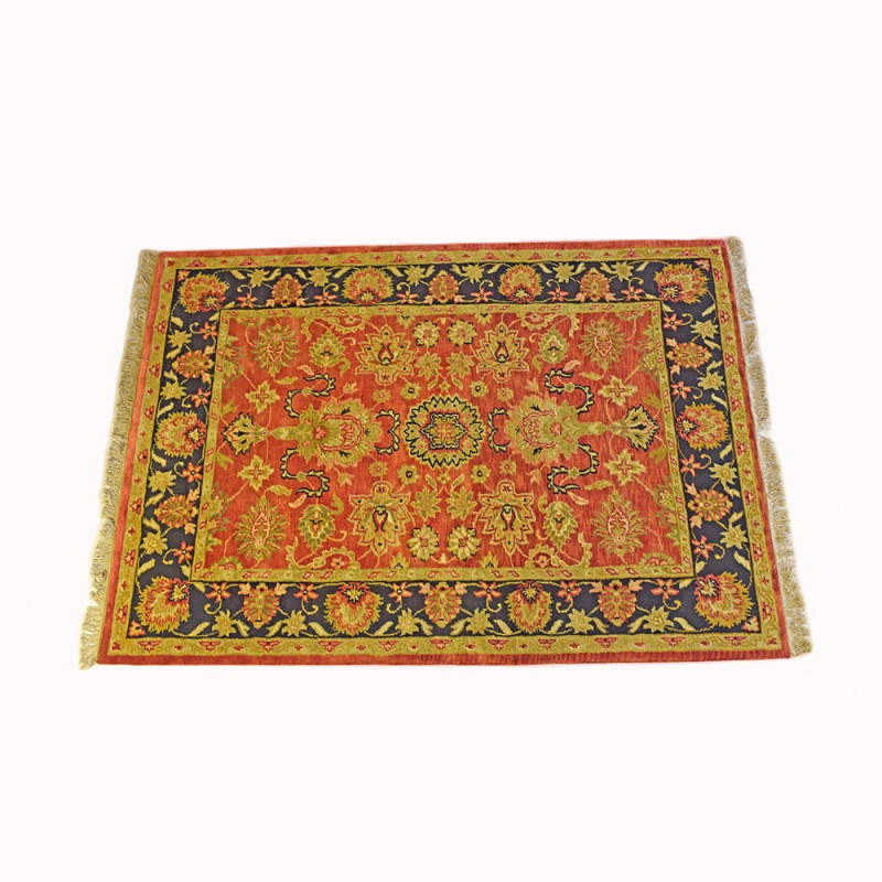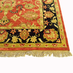 ALFOMBRA MANUAL CONFECCIONADA EN INDIA, DE DISEÑO CLÁSICO FLORAL Y COLORES TEJAS