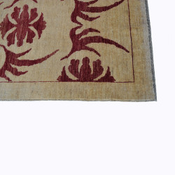 Se trata de una alfombra anudada a mano en Pakistán, con lanas tintadas artesanalmente y lavadas para darle ese aspecto rústico y envejecido tan característico de las alfombras Ziegler.
