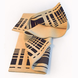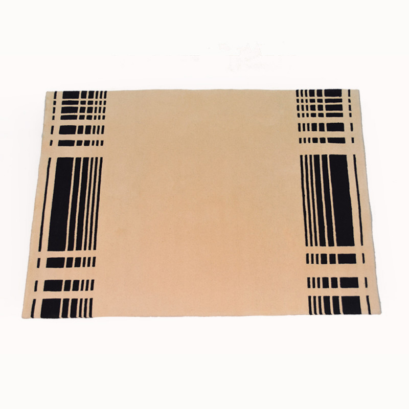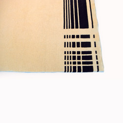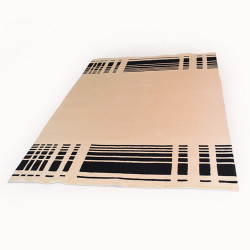 Moderna alfombra en  colores beis y negro. Hecha a mano en India con lanas de alta calidad, que facilitan su limpieza y cuidado.