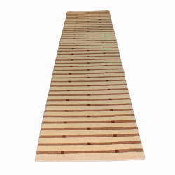 Moderna alfombra en colores beises y tostados. Hecha a mano en India con lanas de alta calidad, que facilitan su limpieza y cuidado.