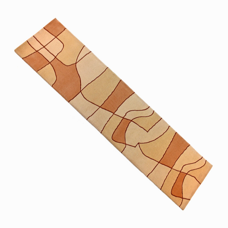 Moderna alfombra en colores beises y tostados. Hecha a mano en India con lanas de alta calidad, que facilitan su limpieza y cuidado.