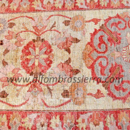 Se trata de una alfombra anudada a mano en Pakistán, con lanas tintadas artesanalmente y lavadas para darle ese aspecto rústico y envejecido tan característico de las alfombras Ziegler.