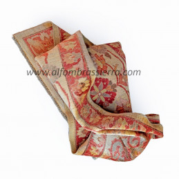 Elegante alfombra clásica, de composición acrílica. Disponible en dos colores, rojo y azúl grisáceo, y multitud de medidas.