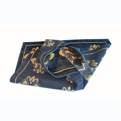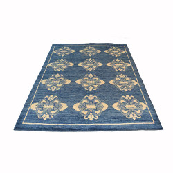 Elegante alfombra clásica, de composición acrílica. Disponible en dos colores, rojo y azúl grisáceo, y multitud de medidas.
